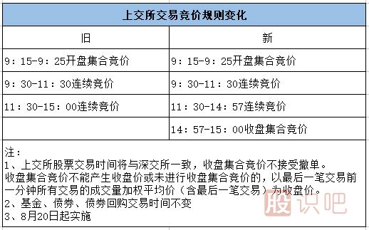 根據(jù)上交所此前發(fā)布的《上海證券交易所交易規(guī)則》等五項調(diào)整后的業(yè)務(wù)規(guī)則,自今日(8月20日)起調(diào)整股票收盤交易機制,通過3分鐘集合競價方式產(chǎn)生收盤價,收盤集合競價階段為14:57至15:00。