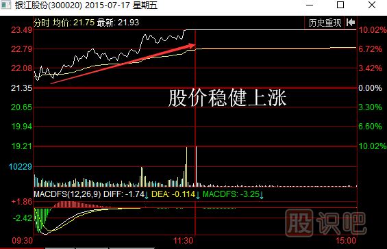 在一個交易日中,如果股票的分時圖能夠持續(xù)穩(wěn)健地上漲,成交量同步溫和放大,中間股價沒有明顯的回落,就說明這個交易日中隨著股價上漲,持續(xù)有投資者追高買入股票。并且著投資者買入,股價越來越高,史多投資者也被上漲行情吸引進(jìn)來,開始買入股票并將股價向上拉升。此時該股票己經(jīng)進(jìn)入了穩(wěn)健的上漲行情中,具備了持續(xù)上漲的潛質(zhì)。