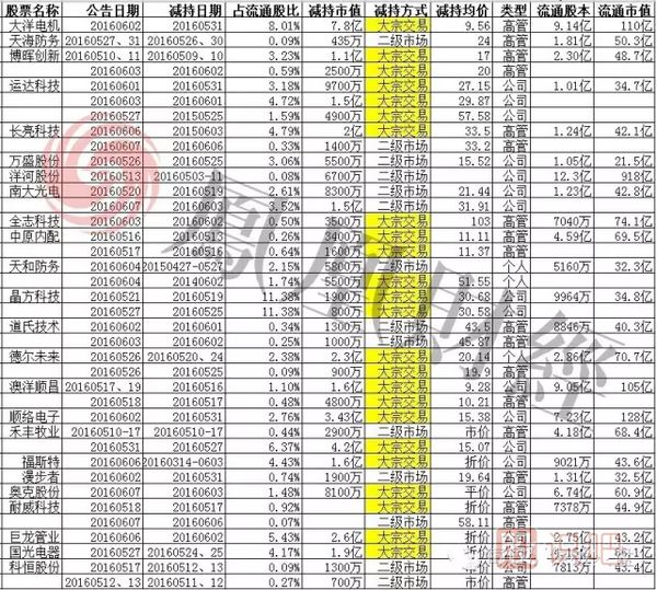 我們先來看個表格,是從2016年5月10日到2016年6月7日,也就是這輪L型橫盤開始到昨天氛圍明顯轉(zhuǎn)弱截止,有減持并且前后有一定漲幅的股票,關(guān)于減持的詳細(xì)情況。