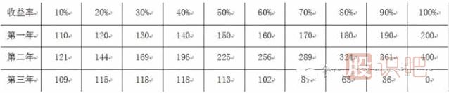 (一)因為“盈虧同源”,一個系統(tǒng),收益率多大,回撤就有多大。如一個年平收益率30%的交易系統(tǒng),其回撤(即虧損幅度)也可能達到30%。比如西蒙斯的量化基金,年平均收益率高達35%~40%,發(fā)生虧損時,凈值也跌落到63%左右;比如索羅斯,其基金年收益率大約在20%~30%,發(fā)生嚴重虧損時,基金凈值一度落到60%~70%。所以收益并不是越高越好。比如,一個交易系統(tǒng),年收益率30%,第一年130%,第二年169%,第三年虧損30%,凈值為169%×(1-30%)=118.3%;年收益率50%,第一年150%,第二年225%,第三年虧損50%,凈值為225%×(1-50%)=112.5%;年收益率60%,第一年160%,第二年256%,第三年虧損60%,凈值為256%×(1-60%)=102.4%。如下表
