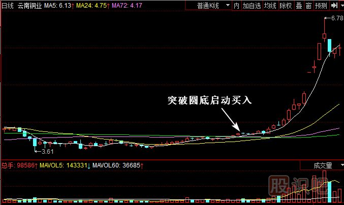 云南銅業(yè)(000878)該股是非常典型的股,在經(jīng)過長(zhǎng)期的橫盤筑底的過程后,股價(jià)緩緩?fù)黄?a href=http://www.123cyq.com/GPRM/sy/1950.html target=_blank class=infotextkey>年線和所有的均線,開始慢慢抬頭。龍?zhí)ь^的形態(tài)非常明顯。在剛剛突破的時(shí)候就可以介入,長(zhǎng)期持有。因?yàn)?ldquo;橫有多長(zhǎng),豎有多高”,很多時(shí)候等的就是這樣的賺錢機(jī)會(huì)。一定不要輕易放手。在股票市場(chǎng),任何股票都會(huì)被主力所利用,這些年里的有色金屬或者礦業(yè)的股票更是被瘋狂炒作過,一旦炒作完畢將帶來長(zhǎng)期的盤整階段。一般的投資者最后不要去碰那些經(jīng)過大幅操作的股票,因?yàn)檎l也知道一旦人氣消散、資金出逃后,股票會(huì)像風(fēng)箏斷線一樣,不知掉到那里去。通常超級(jí)強(qiáng)勢(shì)股都是沿著5日均線不斷向上的,很少跌破5日線,一旦高位出現(xiàn)“避雷針”信號(hào)或者跌破5日線要第一時(shí)間考慮離場(chǎng)觀望。