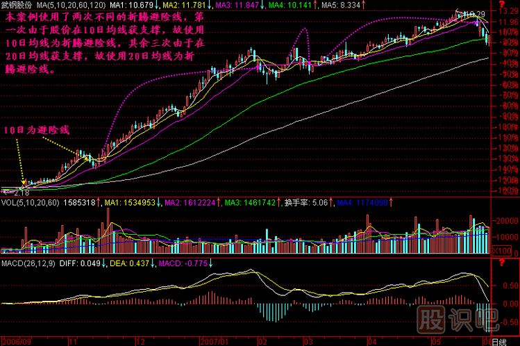 有的股票上升過(guò)程并不出現(xiàn)快速拉升,而是逐步按一定的斜率推高,這樣的股票就看它前期回檔在什么線獲得的支撐,那就用什么線來(lái)折騰避險(xiǎn),這樣就靈活得多。