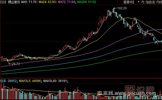 錫業(yè)股份(000960)該股的上漲通道非常明顯,均線組合形成發(fā)散向上的完美形態(tài)。我們認(rèn)為所有超級(jí)強(qiáng)勢(shì)股都是這樣子的均線形態(tài)。5日線在最上面,24日線在第二,72日線在第三,200日年線在最下面的組合排列將股票推升到一個(gè)讓人無(wú)法想像的高度。其實(shí)股票走勢(shì)是有一定規(guī)律的,每次瘋狂上漲的股票都是90度角斜率向上漲停爆發(fā)的,一旦資金跟不上,成交量萎縮就會(huì)引發(fā)暴跌。如果是以30度角斜率上漲的股票通常均線非常完美的時(shí)候會(huì)出現(xiàn)長(zhǎng)期上漲的趨勢(shì)。主力資金勢(shì)力也是巨大的,只是主力不想一下引起別人的關(guān)注而已。通常上漲過(guò)程中很少漲停,不想暴露自己的交易席位,不想成為大眾的目標(biāo)。大部分真正賺錢的人通常是非常低調(diào)的,不愿意引起別人的關(guān)注。我們認(rèn)為股票是沒(méi)有絕對(duì)的好與壞之分的,只有強(qiáng)勢(shì)階段和弱勢(shì)階段之分,強(qiáng)勢(shì)當(dāng)然就是積極參與賺錢順利。弱勢(shì)階段就是跌跌不休,最好遠(yuǎn)離。很少人能夠在弱市當(dāng)中成功賺錢,只有極少數(shù)人能夠幸免于股災(zāi)。為了成功抓住黑馬的啟動(dòng)點(diǎn),我們一定要專注去研究短線牛股或者是長(zhǎng)線牛股的啟動(dòng)點(diǎn)特征。錫業(yè)股份也是這樣一只標(biāo)準(zhǔn)的強(qiáng)市大牛股。
