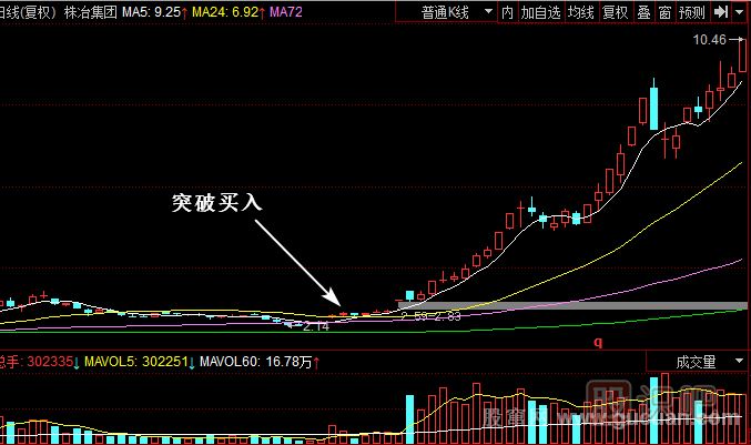 (1)股價開始緩慢上漲,隨著成交量溫和放大,加速的時機來臨,這個時候最好買入。