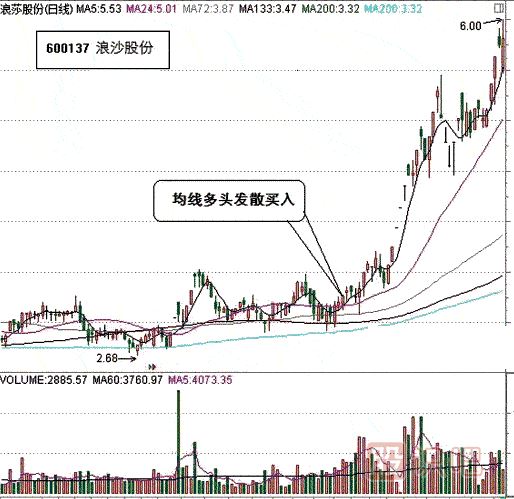 ST浪莎(600137)該股在突破年線之后,反復回抽確認年線和24日生命線以及72日決策線。股價在不斷溫和上漲的過程當中,均線成為多頭排列。發(fā)散向上的均線組合是超級強勢股誕生的標記。一旦發(fā)現(xiàn)長期均線粘合在一起然后形成多頭排列的股票,一定要大膽操作,機會通常是巨大的,一次成功的操作可以讓本金翻倍。只有不斷做對的決策并且勇敢地堅持做大波段操作,這樣幾次成功之后,本金就已經(jīng)非常巨大了,隨時買賣都可能成為十大股東。