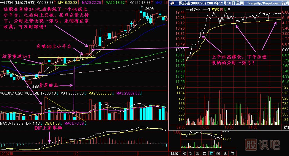 小結:一張弓是莊家積極建倉的分時走勢,如果一張弓出現(xiàn)在漲勢初中期,且成交量和形態(tài)配合理想的,我們就可以在收盤之前積極吸納,幫莊家一把,大家賺錢才是真的好!