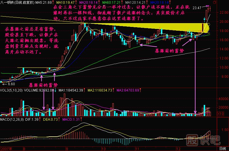 小結(jié):股價暴漲之前都會有一個蓄勢的過程,它是在積蓄能量,它是在考驗意志不堅定者。