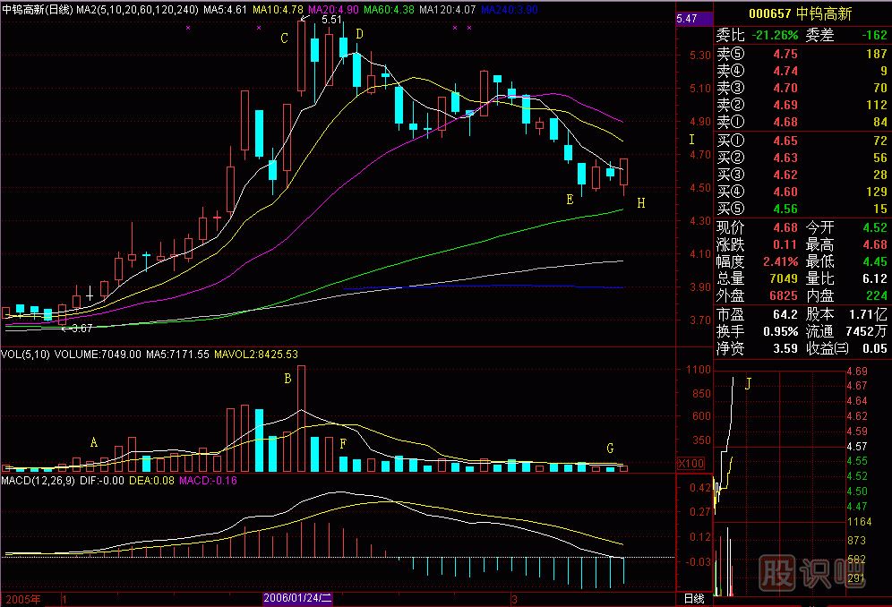 大死爪圖252-1今天000592ST昌源終于跌停板了(圖252-1)。這只個(gè)股最致命處是大死爪圖形,從D點(diǎn)開始,20、60和120日平均線呈“爪&rd...