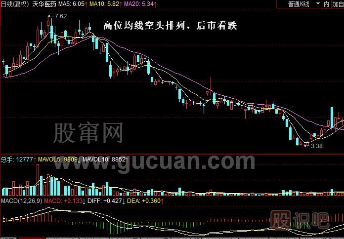 空頭排列表現(xiàn)在股票處于下降趨勢,年線、半年線、120日線、60日均線、20日...