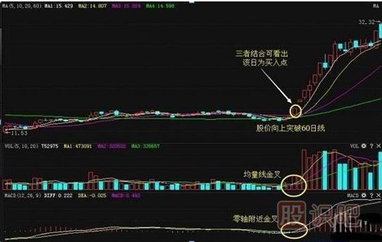 如果在均線和MACD指標金叉的同時,均量線也完成了金叉,則說明隨著股價上升速度加快。