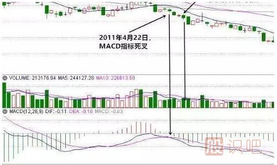 如果在均線和MACD指標死叉的同時,均量線也完成了死叉,則說明隨著股價下跌速度加快。