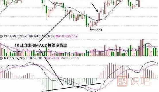 在股價與MACD柱線底背離的同時,如果成交量也逐漸萎縮,則驗證了股價下跌動能逐漸減弱的訊息