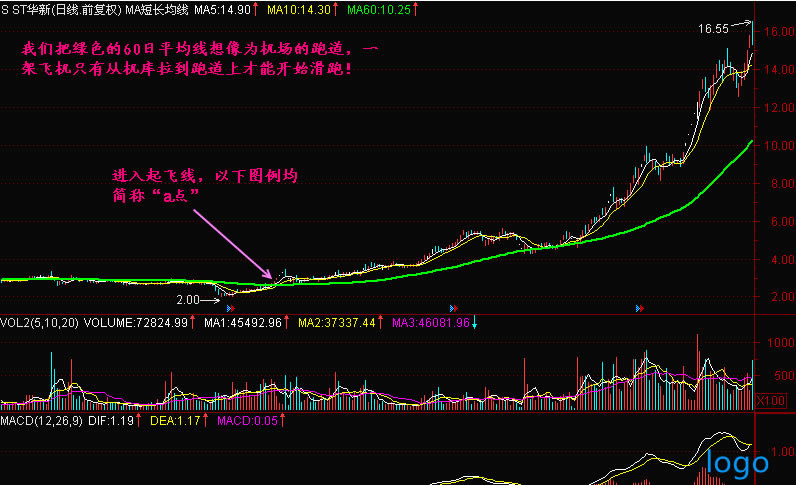 3:經(jīng)過為期2、3個月的初步吃進(jìn)后,機(jī)構(gòu)會發(fā)現(xiàn),在這個區(qū)域已經(jīng)吃不到多少籌碼,因此,進(jìn)行第一步拉高,這個拉高比較急切,因?yàn)橥鍓K的個股開始上升,于是,我們可以觀察到,機(jī)構(gòu)已經(jīng)快速封漲停。在突破A點(diǎn)阻力位拉出第一個漲停之后,機(jī)構(gòu)借助市場短線籌碼的拋售壓力增加而主動打開漲停。一般這個時候,細(xì)心的投資者會發(fā)現(xiàn),盤中拋售的籌碼總有資金耐心吃去,在全天的漲停里,一般有3、4次打開漲停板的機(jī)會,可是每次的打開幅度變小,而且量萎縮,說明市場籌碼逐步被機(jī)構(gòu)收集。這個過程就叫漲停板法吃貨。