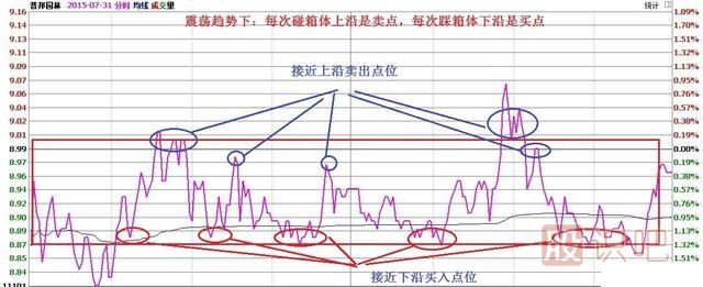 震蕩趨勢下:每次碰箱體上沿是賣點,每次踩箱體下沿是買點
