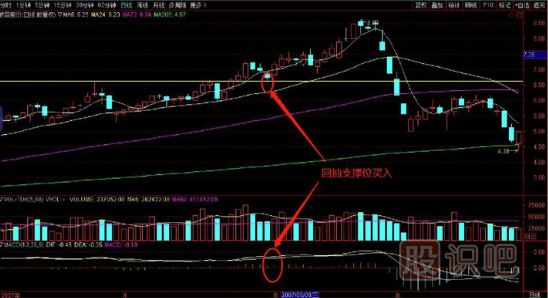 很多股票在突破前期高位之后都會(huì)有一個(gè)回抽確認(rèn)的過程,目的就是要洗去浮籌,減輕進(jìn)一步上下的壓力,在前期高位獲得支撐后就是最佳的買入點(diǎn)。