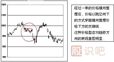 突破缺口通常發(fā)生在一段價格整理區(qū)之后,當(dāng)價格在交易密集區(qū)完成整理,并發(fā)生突破時,常以缺口型態(tài)顯現(xiàn)出來,這種缺口便是突破缺口。