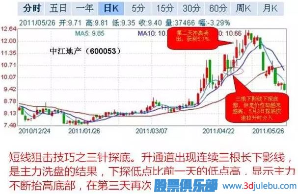 二、短線狙擊技巧之三針探底。