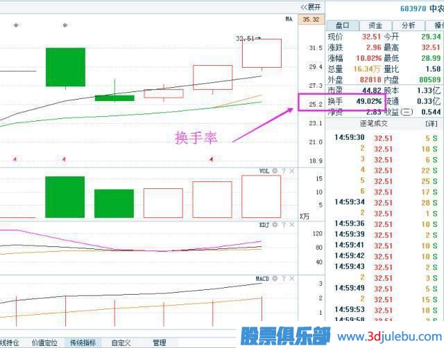 第三步、選擇換手率突然放大3倍以上進(jìn)入此區(qū)域或連續(xù)多日平均換手率維持在此區(qū)域的個(gè)股。