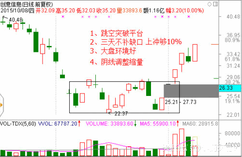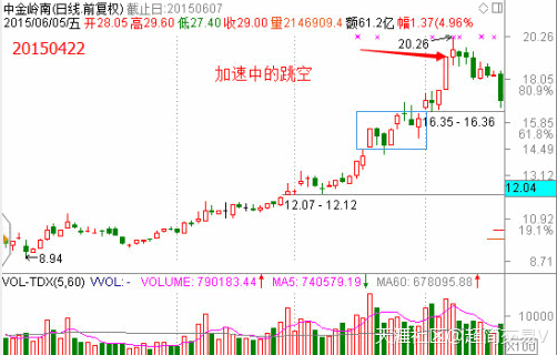 1、必須盤(pán)整突破或者上升加速的跳空缺口,缺口越大越好。