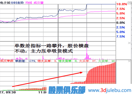 2、若股價(jià)走勢消極,但單數(shù)差指標(biāo)卻逆勢飄紅,通常紅柱一路向上,我們理解為機(jī)構(gòu)逆勢吸貨,中小投資者看到這種現(xiàn)象賺錢的機(jī)會(huì)來了