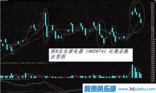 界龍實(shí)業(yè)的頂部日k線走勢(shì)圖,出貨前大角度、跳空大陽(yáng)線快速拉升,提醒我們危險(xiǎn)馬上就要來(lái)了,這時(shí)候如果你短線技術(shù)好的也別急著賣股票,因?yàn)榇藭r(shí)頭部特征還沒(méi)有形成,當(dāng)出現(xiàn)小陰小陽(yáng)或十字星時(shí)要引起我們的高度警惕,放量滯漲或縮量滯漲都是盤(pán)頭出貨特征。