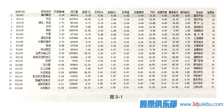 如何從集合竟價看當(dāng)日熱點板塊 板塊熱點的把握上,以2011年12月26日開盤為例(如圖3-1),豬肉概念競價排名第另外,與豬肉概念聯(lián)動性較好的農(nóng)業(yè)板塊也位列前茅。這顯示其高舉高打的強勢,我們應(yīng)配合大盤,密切關(guān)注主力短線調(diào)倉的可能性。