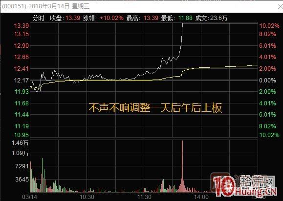主要的形式有三種,一種是漲停之后的爛板放量,一種是早上快速放量后10:30之前上板,一種是不聲不響的調整一天后午后(或10:30之后)上板。