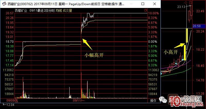 西藏礦業(yè)的分時圖不如前面的案例流暢,屬于是震蕩沖高, 這是由于盤子大,資金拉升大盤股不如小盤股容易,但背后的道理都一樣。