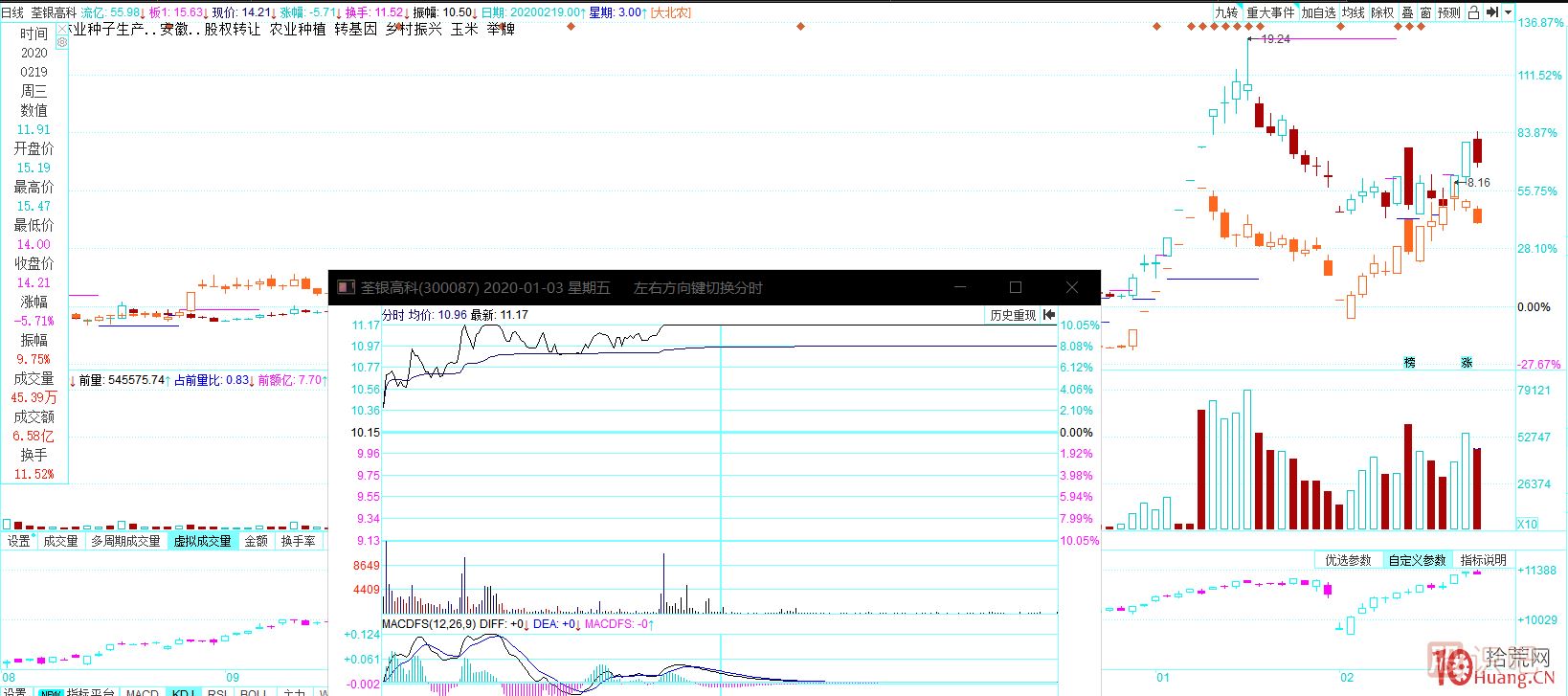 如:2020年1月3日荃銀高科補(bǔ)漲大北農(nóng)
