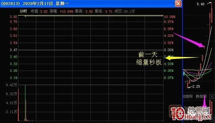 形態(tài)上,有多種表現(xiàn):縮量、秒板/快速板、T字快速回封等。滿足一個(gè)條件即可,極致是一字縮量板。