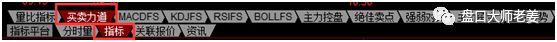 進(jìn)入同花順軟件,在分時(shí)圖界面點(diǎn)擊「指標(biāo)」,選擇「買賣力道」。在「買賣力道」中,綠色線表示總賣量的變化趨勢,黃色線表示總買量的變化趨勢。