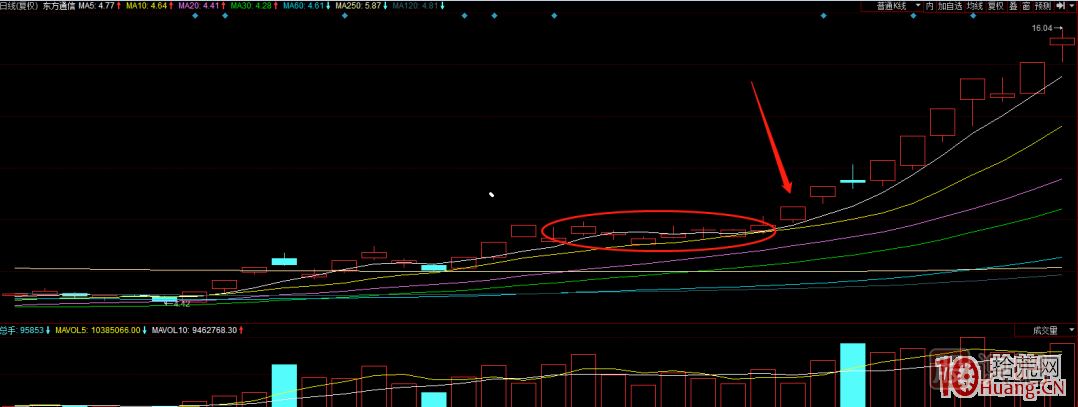 多發(fā)生在去年的次新行情,600903貴州燃氣和300624萬興科技的2波走勢,由于4月后虧錢效應嚴重,出現(xiàn)這種情況的次數(shù)也不多,今年行情的代表應該是600776東方通信的平臺8連陽調整的新高突破板,開啟了一波轟轟烈烈的5G行情,核心邏輯是多空雙方在平臺整理階段基本處于相持不下勢均力敵的階段,即將開始變盤信號,一旦突破拉板說明市場選擇做多向上,代表案例600776東方通信。