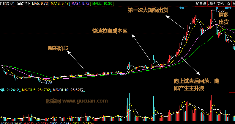上面是莊家坐莊的整個過程,希望讀者能夠認真體會,深刻認識量能在分析莊家行為中的重要性。