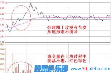 1、分時圖走勢攻擊性強,上漲則快速拉高,同時成交量放大,在推高過程中,一般呈現(xiàn)加速上攻的形態(tài),而不能是拱形上漲。