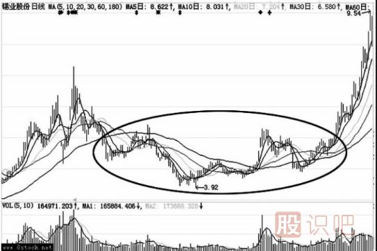 在極度恐懼之中眾多散戶投資者,基本上都會經受不住這種折磨而割肉出局,這恰恰正中了莊家設定好的圈套??s量回調之后的股票價格,在晃晃悠悠地確認了股價下檔的某一“關鍵”支撐點位后,大多又會慢慢悠悠地上下折騰,在出局者尚未緩過神來就又重新返回到原來的價格區(qū)間之上了。股票的成交量在這個時候也會開始逐步放大,并出現(xiàn)一種價升量增的配合勢態(tài),推升股價迅速地離開莊家成本所在的區(qū)域。