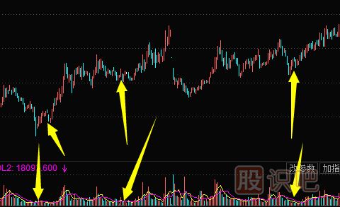 如圖所示,當股價往下調整時成交量往往呈現(xiàn)縮量態(tài)勢。具體來看,主力通過少量的籌碼以低價格成交從而打壓股價,試圖嚇走一部分散戶;而當股價回升之時,主力就會買入一些恐慌性拋盤。從成交量上來看,圖中所示為縮量,說明主力已經清洗了盤面大部分浮籌,換句話說,主力已經透過長時間震蕩走勢控制了盤面。需要注意的是,震蕩洗盤就是這么一個過程:股價通過不停地漲跌動作以趕走持股信心不足的散戶,這有利于主力進一步控制盤面。