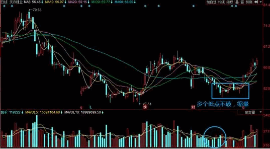 強(qiáng)勢(shì)股企穩(wěn)基本可以買入了,企穩(wěn)的信號(hào)一般是多個(gè)低點(diǎn)不破、長(zhǎng)下影線或是縮量等特征,如圖天齊鋰業(yè)屬于多次低點(diǎn)不破。