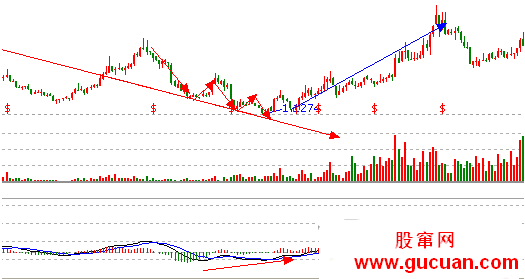 4、指標(biāo)必須有明顯的背離,價(jià)格新低但MACD柱子縮短,柱子翻紅證明強(qiáng)勢(shì);