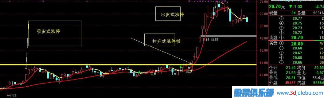 吸貨式拉升式出貨式漲停板形態(tài):