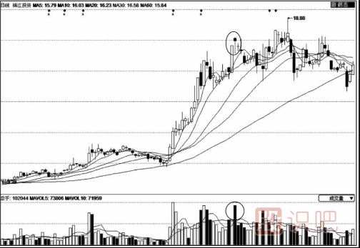 (2)股價(jià)在上漲過程中,特別是在股價(jià)運(yùn)行到半年線或者是年線附近出現(xiàn)放量十字線時(shí),投資者一定要密切關(guān)注股價(jià)次日的行情走勢。