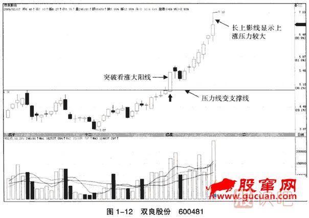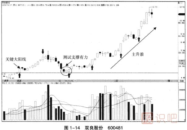 (1)圖1-14顯示了雙良股份突破重要壓力線后的真正拉升過程。