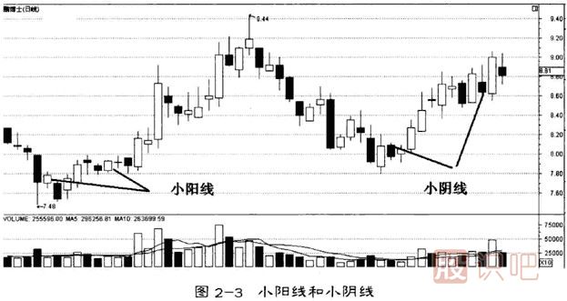 小陽(yáng)線與小陰線是指開盤價(jià)與收盤價(jià)相差不大,K線實(shí)體比較短,并帶有較短的上下影線,沒有上下影線的稱為光頭光腳小陽(yáng)線與光頭光腳小陰線。