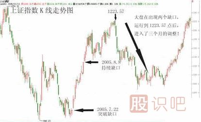 在K線的運行過程中,有一種極為特殊而又重要的現(xiàn)象,那就是跳空缺口。通常情況下,K線的運行是連貫的,缺口的出現(xiàn)使K線運行有了中斷,這種當日k線與前日K線之間的中斷就是跳空缺口。