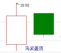 刺透形態(tài),在形態(tài)上是和頂部形態(tài)研究中的烏云蓋頂相對(duì)應(yīng)的底部形態(tài),我們來通過下面兩幅圖對(duì)比一下: