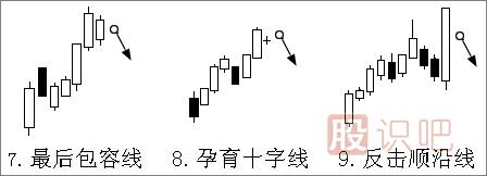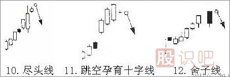 持續(xù)漲升的行情一旦出現(xiàn)此圖形,表示上漲力道即將不足,行情將回檔盤整,投資人宜先行獲利了結(jié)。這也是一種“障眼線”,小陽(yáng)線并沒(méi)有超越前一日的最高點(diǎn),證明上漲乏力,行情下跌。