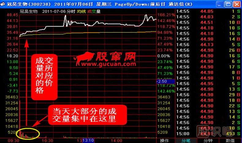 ⑤通過當天分時圖走勢和所對應的成交量分析,可以明確的辨別當天K線的真?zhèn)巍?/div>