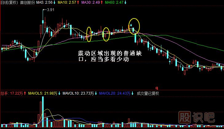 由于跳空就會(huì)成缺口,這里我們就要學(xué)一下股市里很著名也很實(shí)用的一個(gè)理論,即缺口理論。一般情況下,缺口可分為4個(gè)類型:普通缺口、突破缺口、持續(xù)缺口、衰竭缺口。