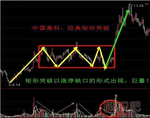 3、矩形的突破位置經(jīng)常是放量長陽,甚至漲停