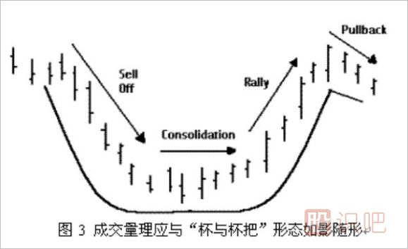 雖然成交量指標(biāo)有助于“杯與杯把”形態(tài)的確認(rèn),但價(jià)格形態(tài)本身更為重要,由于成交量不會(huì)完全與價(jià)格走勢(shì)亦步亦趨,因此不應(yīng)簡(jiǎn)單地靠成交量來(lái)定義一個(gè)“杯與杯把”形態(tài)。