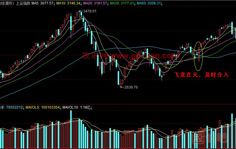 出現(xiàn)這樣一根飛龍?jiān)谔斓年?yáng)線,正是短線介入的時(shí)機(jī)。此后上證指數(shù)繼續(xù)震蕩上揚(yáng),其中很多個(gè)股短期更是走出了大幅上漲的趨勢(shì),如果我們能夠及時(shí)抓住這一機(jī)會(huì),就能夠賺錢(qián)。至于賺多賺少,要看自己對(duì)個(gè)股的選擇能力。